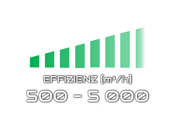 Die Produktlinie umfasst 4 Größen, Abdeckung des Luftstrombereichs von 500 bis 5000 m3/h.