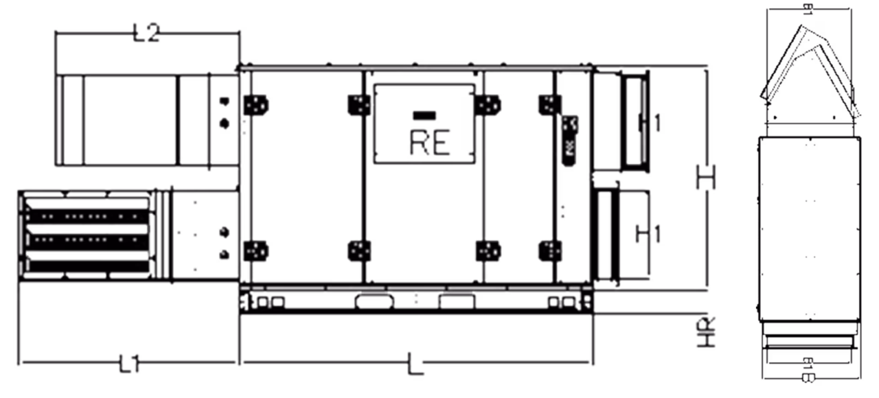 Das Lüftungsgerät ist für die Installation im Innenbereich und im Freien geeignet. Die Ausführung der Geräteseite ist in linker und rechter Version erhältlich.